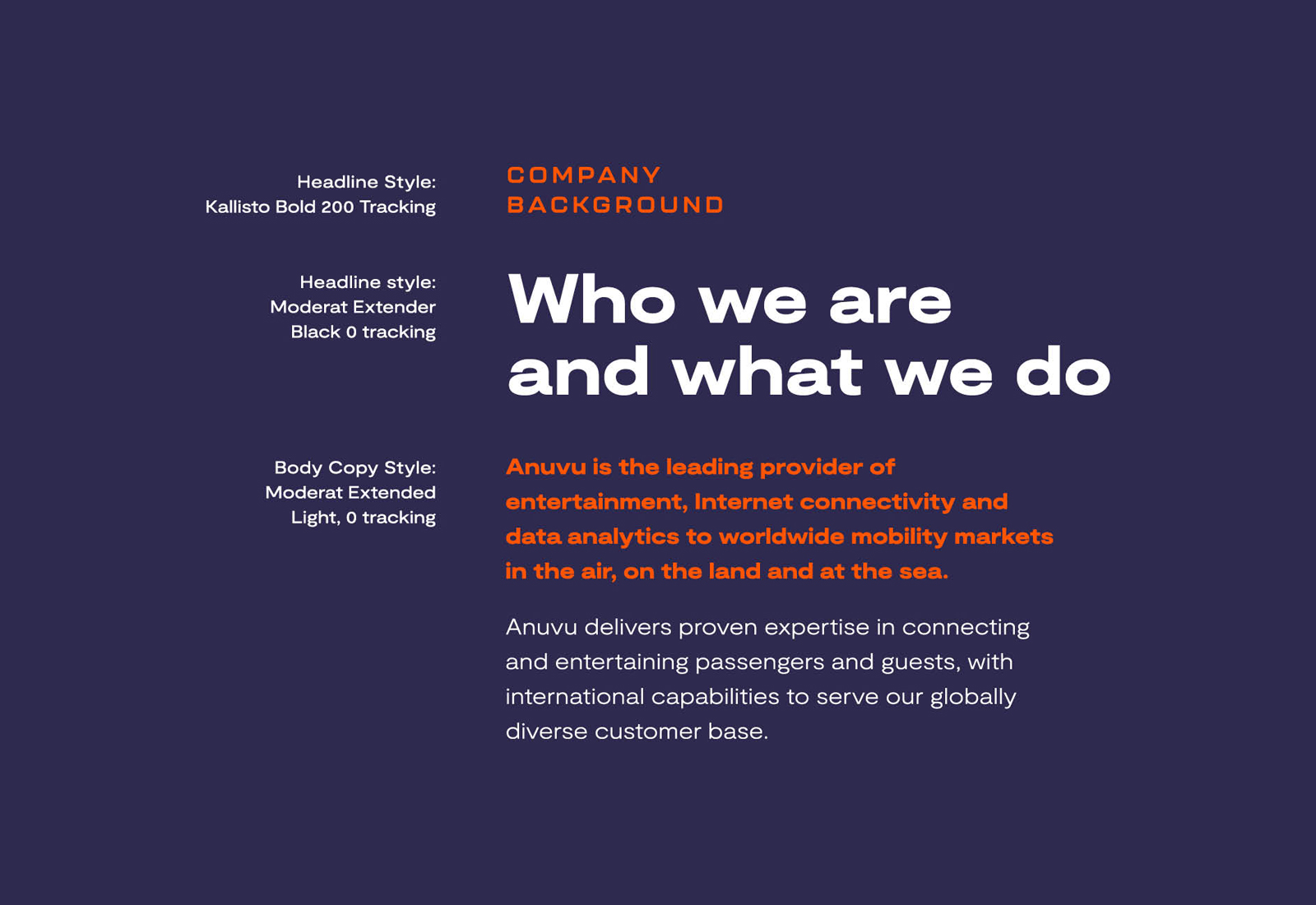 In light of the impact that Covid had on the travel industry, Global Eagle made a decision that 2020 was a good time to go through a rebrand with a completely new name. The chosen name Anuvu comes from the seed ‘a new view’ which works on many levels. They are hoping to emerge as an agile and innovative modern media and technology company, but they still wanted their new logo to reflect them as strong, sturdy and reliable.